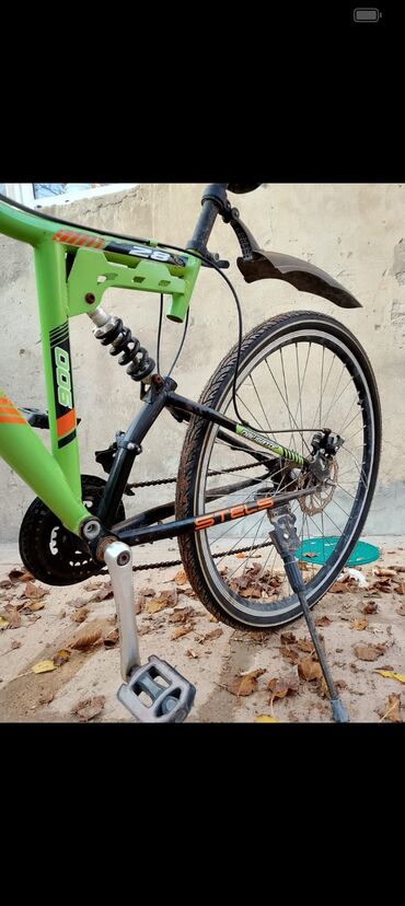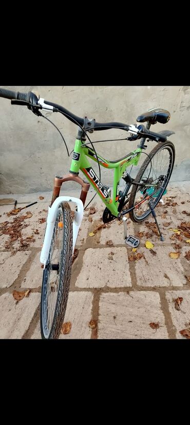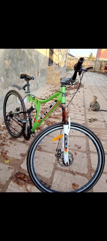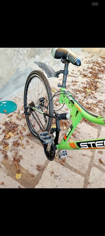 Stels şəhər/trek tipli velosiped Xüsusiyyətlər: - Brend: Stels - Çərçivə: yüngül metaldan, mat boz-yaşıl dizayn - Təkərlər: iri protektorlu şinlər, 26–27.5” ölçü kateqoriyası (şəkildəkilər) - Əylə...