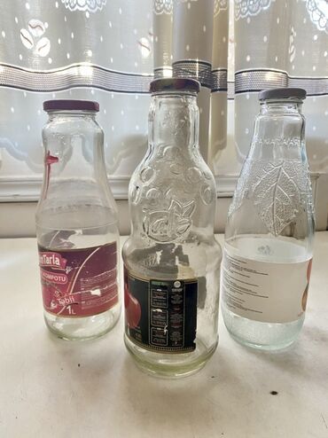 Şüşə butulkalar dəsti - Həcmi: 1 litr (etiketdə “Bizim Tarla” kompot butulkaları) - Miqdarı: 5 ədəd - Material: qalın şüşə - Qapaqlar: müxtəlif rəngli metal qapaqlar (bəzilərində qapaq var) - Form...