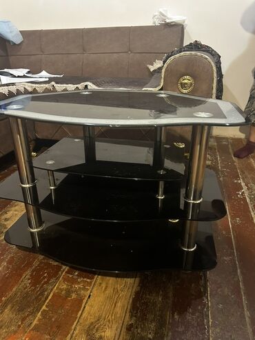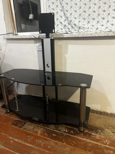 Müasir dizaynlı TV stendi - Rəng: ağ rəf səthləri, qara metal karkas - Material: möhkəm metal çərçivə, hamar laminat/taxta tipli ikiqat rəf - Ölçü təsviri: geniş üst səth böyük ölçülü televizorlar...