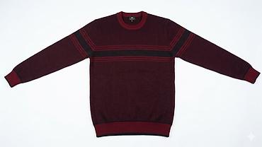 Heç bir prablemi yoxdu, cırığı cızığı və ya söküyü olmuyub. Təmiz Türk malıdı. Bordo rəngdə kişilər üçün trikotaj sviter. - Naxışlı zolaqlı dizayn: sin...
