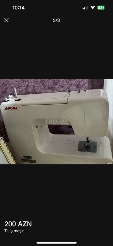 Şəkildə göstərilən qiymət: 200 AZN. Kateqoriya: “Tikiş maşını”.