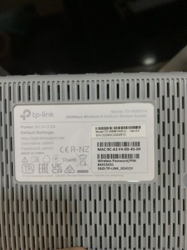 Başlıq: Modem Təsvir: TP-Link TD-W8961N ADSL2+ modem/router. - Simsiz sürət: 300 Mbps (2.4 GHz) - Daxili ADSL modem + Wi‑Fi router funksiyası - 2 ədəd çıxarıla bilən anten - 4x LAN port (Ethernet...