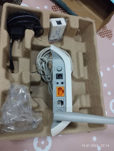 TP-Link simsiz router Xüsusiyyətlər: - İki antenalı dizayn – stabil və geniş Wi‑Fi örtüyü - Ön paneldə göstərici LED-lər - Arxa paneldə bir WAN (mavi) və bir neçə LAN (narıncı) portu – modemə qoşu...