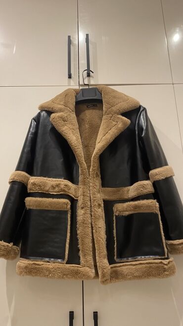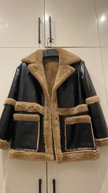 Qadın/Kişi üçün süni dərili, içi və haşiyələri süni kürklə olan qış gödəkçəsi (shearling stilində).