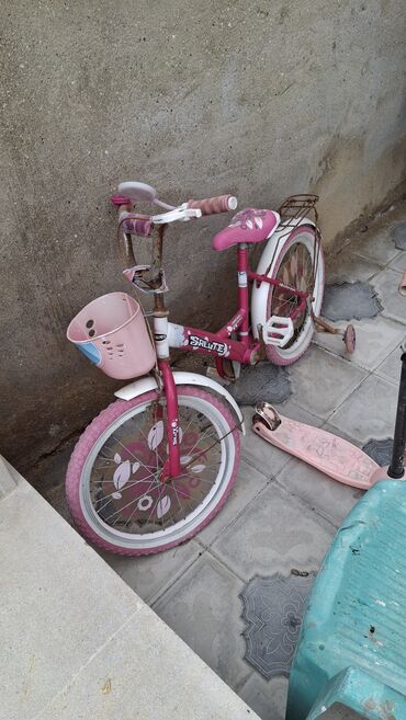 - Şəkildə bir ədəd çəhrayı uşaq velosipedi görünür: öndə səbət, tənzimlənən oturacaq, zəncir qoruyucusu, ön və arxa palçıq qoruyucuları, arxa baqaj, plastik pedallar, 2 təkər. Ön təkərdə dekorativ çiçək naxışlı disk örtükləri var. Sükanında zəng yeri və tutacaqlar mövcuddur.