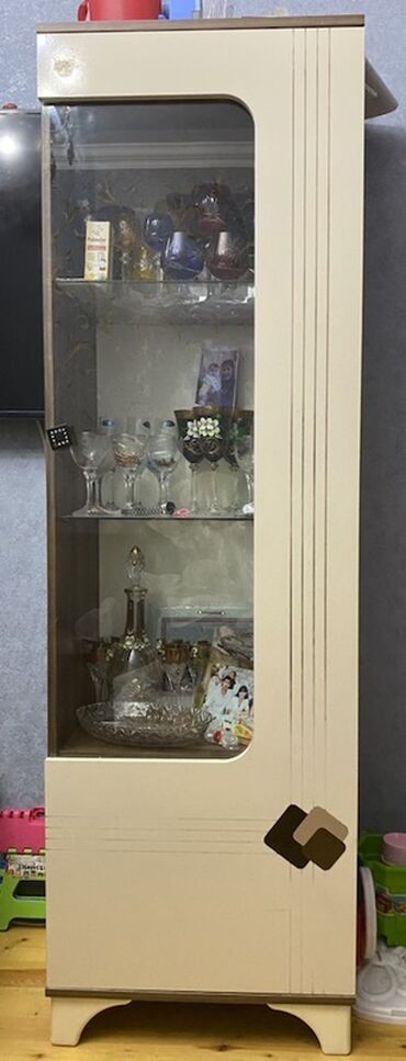 - Material: MDF/LDSP karkas, şüşə qapılar və rəflər