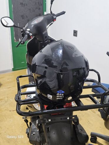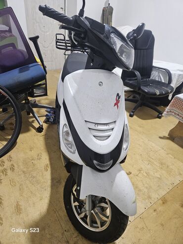 - Mühərrik bölməsi: klassik benzinli skuter quruluşu (CVT variatorlu ötürmə), ayaqla və əl ilə start düymələri üçün yerlər