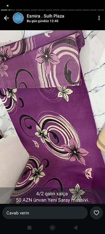 3×4m olcude. cox az iwlenib. Xalca yuma wirketimde yuyulub, selofandadir. 2 eded var. Her biri 120 azn. Oval forma. Unvan Yeni Yasamal