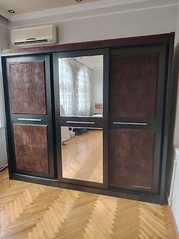 - Komplekt: sürüşkən qapılı 3 bölməli şkaf və iki nəfərlik çarpayı (matrasla).