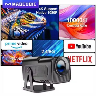 Magcubic proyektor. Youtube, Google, Netflix proqramlı,android sistemli, Wifi ilə qoşulma imkanı. 240 ×160 sm ölçüsü. Texniki Xüsusiyyətlər Nəticə: 1080p Full HDParlaqlıq: 6500 lümen Kontrast Nisb...