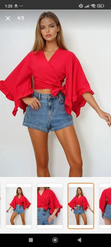 Qirmizi reng qisa qollu yaz ve yay aylarinda geyile bilecek koynek Rusiya istehsali