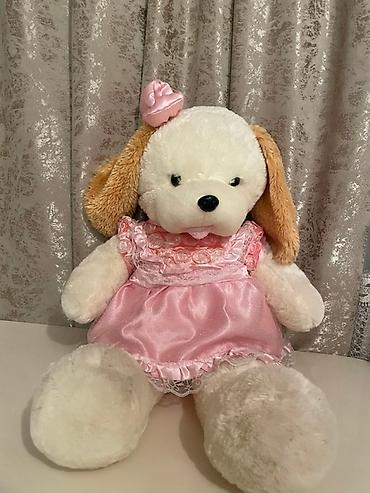 Ağ rəngli, mavi qulaqları və pəncələri olan sevimli doldurulmuş ayı. Bu ayının boynunda qırmızı və ağ rəngli damalı kəpənək qalstuk və qırmızı düymə şəklində bəzək var. Yumşaq materialdan hazırlanı...