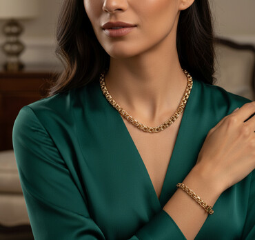 Pulsuz çatdırılmaQızılı rəngdə, zəncirvari toxunuşlu dəst boyunbağı və qolbağı. Boyunbağı və qolbağı həm kişilər, həm də qadınlar üçün uyğundur və istənilən geyimə zəriflik qatır. Xupinq bijuteriya dəstləri qaralmayan təzədir çox keyfiyyətli məhsuldur qiymətlər telefon vasitəsilə razılaşma əsasında