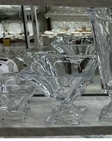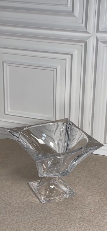 Şüşə dekorativ qab – modern dizayn - Material: qalın, şəffaf şüşə -