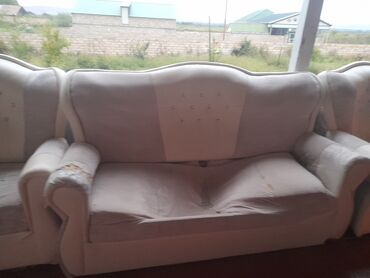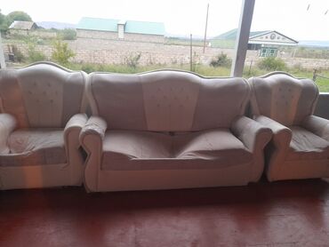 Ağ-bej rəng çalarlarında 3 hissəli yumşaq mebel dəsti: