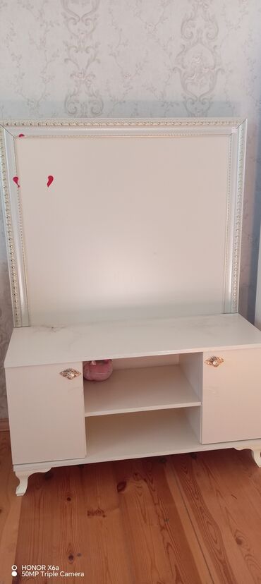 Ağ rəngli klassik tərzdə tualet/TV tumba dəsti.