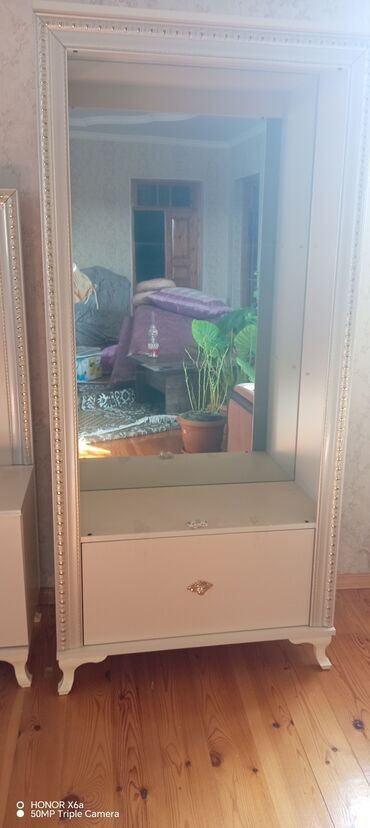 - Ön tərəfi tam güzgü, ətrafı eyni dekorativ bordürlə çərçivələnib