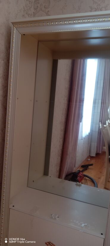 - Üst hissədə iri çərçivəli güzgü: dekorativ mirvari naxışlı bordür, klassik işləməli konturlar