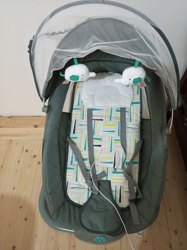 Elektriklə işləyən beşik/kolibə - Yanları tam hava keçiren mesh torlu oval beşik - Yuxarıdan quraşdırılan qatlanan ağcaqanad toru - Aşağı hissədə elektronik idarə paneli: taymer, yellənmə rejimlər...