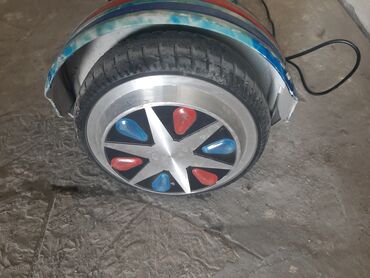 Qırmızı rəngdə, yığcam dizaynlı, iki təkərli hoverboard. Ayaqlar üçün qara platformaları və qabaqda mavi LED işıqları var. Mərkəzdə sürət və batareya səviyyəsini göstərən bir ekran mövcuddur. Şəhər...