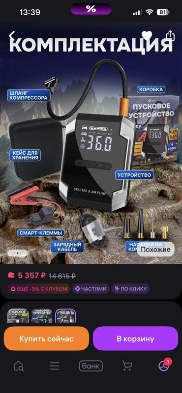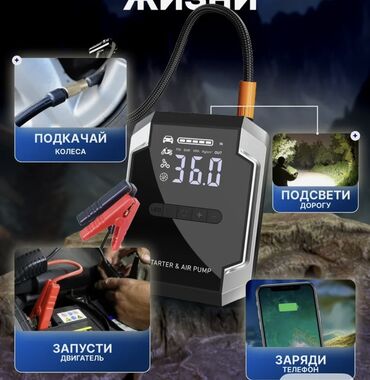 Yolda təcili yardım üçün 4-ü 1-də həll: mühərriki işə sal, təkəri şişirt, yolu işıqlandır, telefonu doldur. Portativ, avtomobildə daimi saxlamaq üçün ideal.