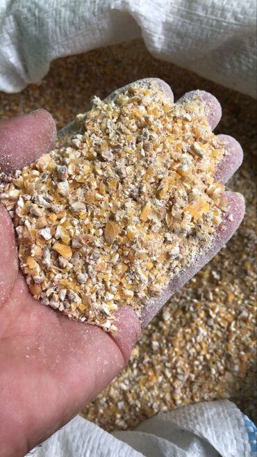 - Qırılmış qarğıdalı (şəkil 3): Xırdalanmış fraksiya, tez həzm olunan enerji mənbəyi. Quşçuluq (broyler, yumurtacı), dovşan, donuzçuluq və mal-qara üçün hazır yem qarışıqlarına birbaşa qatmaq üçün əlverişlidir.