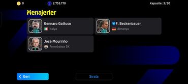 - Menecerlər: Gennaro Gattuso, José Mourinho, Franz Beckenbauer