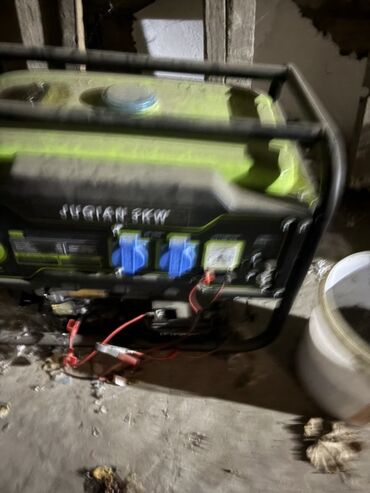 - Benzin generatoru: JUGIAN 8 kW gücündə, üst hissədə yanacaq çəni, idarə panelində göstəricilər və sığorta düymələri, 2 ədəd 220V (mavi) çıxış rozetkası, alt hissədə akkumulyatorla elektrikli start üçün kabellər. Boru karkaslı daşıma çərçivəsi.