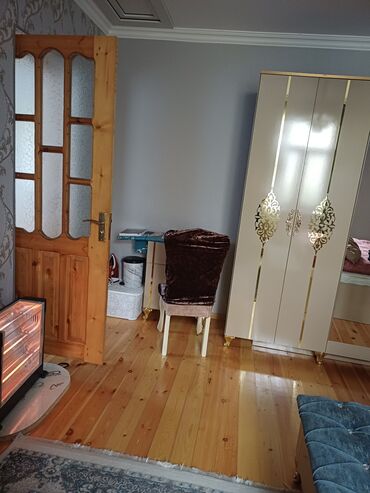- Yataq otağı – taxta döşəmə, qapıdaxili şüşəli taxta qapı, qarderob və masa üçün yer.