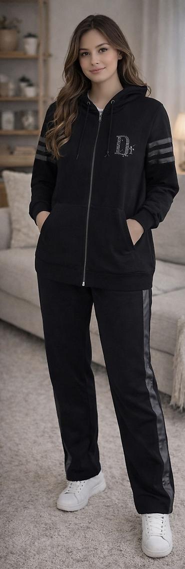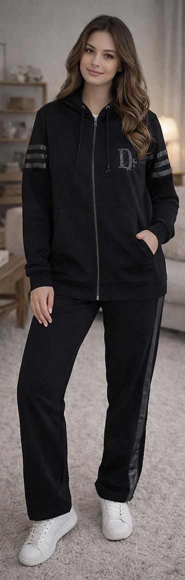 - 2 parçadan ibarət: kapüşonlu, tam fermuarlı svitşot və uyğun şalvar