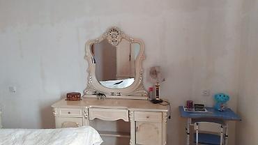 Klassik üslubda tam dəst mebel Tərkibi: - Yataq otağı: geniş iki nəfərlik çarpayı, yumşaq kapitone başlıqla; iri pəncərəli tualet masası və böyük güzgü, kiçik dekorativ güzgü; 3 çekmecəli komod; y...