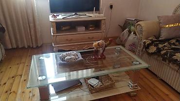 - Şüşə üstlü jurnal masası – qalın temperli şüşə, metal dayaqlar, aşağıda əlavə rəf