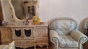 Yataq otağı və qonaq otağı üçün mebel dəsti,Ailə ve tələbə qızlara verilir Yataq otağı: - 2 nəfərlik çarpayı (yumşaq başlıq, düyməli kapitonaj, krem rəngli dekor və qızılı ornamentlər) - 2 qapılı ...