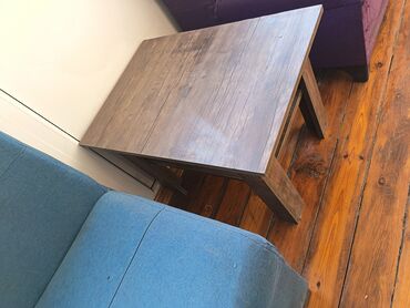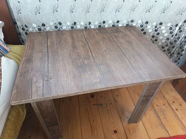 - Taxta masa: düzbucaqlı forma, dörd möhkəm ayaq. Təbii taxta teksturası üslubunda dekorlu səth, iç məkana rustik görünüş qatır. Qəhvə masası kimi və ya kiçik iş/oxu masası kimi istifadə oluna bilər.