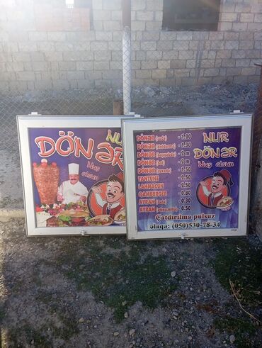 - Köskün üzərinə asmaq üçün iki ədəd vitrin tipli reklam lövhəsi (menyu) də var