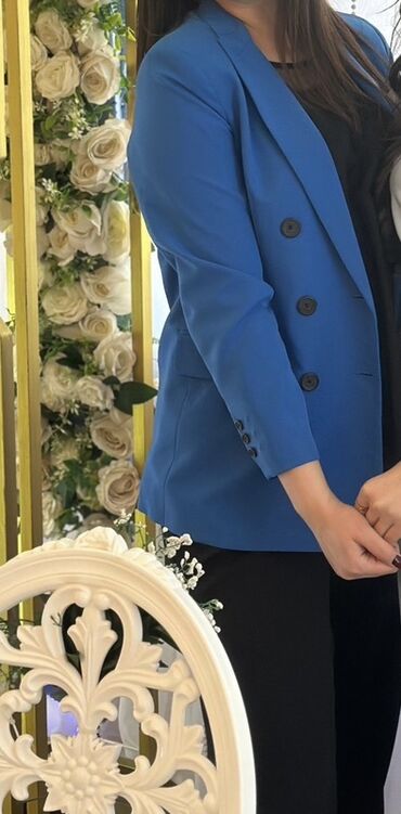 - Brend: JIZEL - Ölçü: 44 (etiketdə göstərilib) - Model: Qadın blazeri - Rəng: Göy-yaşıl (təbaşir tonlarında) - Dizayn: Klassik haşiyəli yaxalıq, düyməsiz ön hissə - Qol: 3/4 uzunluqda qatlanmış ma...