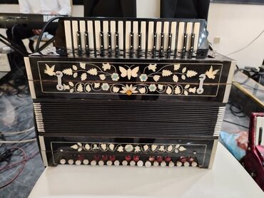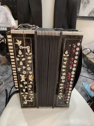 Akkordeon – dekorativ naxışlı, klaviş və knopkalarla - Növ: klavişli-knopkalı akkordeon - Korpus: qara rəngdə, əl işi güllü ornamentlər və zərif naxışlarla bəzədilmiş - Hava körpüsü: qırmızı-qara ...Giriş•Qeydiyyat
