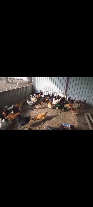 - Təsvir: Açıq həyətdə saxlanılan, aktiv və yemləmə qabları ilə təmin olunmuş qarışıq rəng və cinslərdən toyuqlar və xoruzlar. Ağ, qara, qızılı-sarı, ləçəklı və ləkəli rəng çalarları mövcuddur.