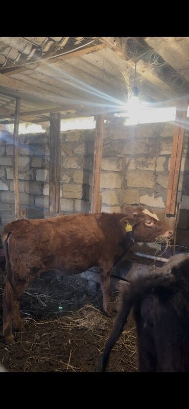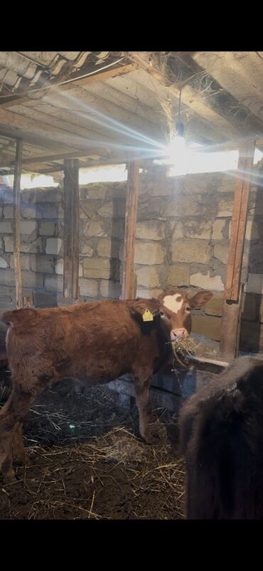 Qırmızı rəngli dişi dana - Qulaq birkası mövcuddur - Alnında ağ