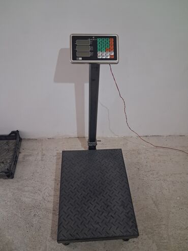 Elektron platforma tərəzi - Platforma ölçüsü: metal, səthində naxışlı sürüşməyə qarşı lövhə - İdarəetmə paneli: 3 ayrı LCD göstərici - Kütlə (kg) - Qiymət (qrn/kg) - Dəyər (qrn) - Klaviatura...