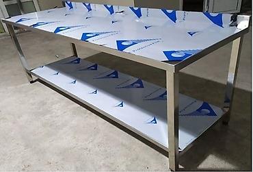 Mətbəx, restoran və digər ictimai iaşə müəssisələri üçün hazırlanmış paslanmayan poladdan hazırlanmış möhkəm iş masası. Bu masa asan təmizlənir və uzunömürlülüyü ilə seçilir. Üst səthində yüksək dayanıqlıq təmin edən bir haşiyə var. Aşağı rəf əlavə saxlama sahəsi təmin edir. Bu masa gündəlik istifadəyə davamlıdır və müxtəlif sənaye sahələrində geniş tətbiq olunur. Peşəkar mühitlər üçün optimal seçimdir.