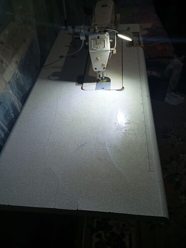Sənaye tikiş maşını – masa, pedalla idarə olunan güclü elektrik mühərriki və işıqlandırma ilə komplekt.