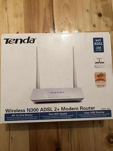 Tenda D301 N300 ADSL2+ Wi‑Fi modem router………………………… - Model: D301 N300 (ADSL2+ modem və 300 Mbps sürətli 2.4 GHz Wi‑Fi router) - Üzərində 3 ədəd antena – ev və ofis üçün geniş örtüş - Portlar: 1× ...