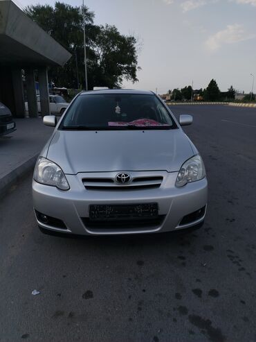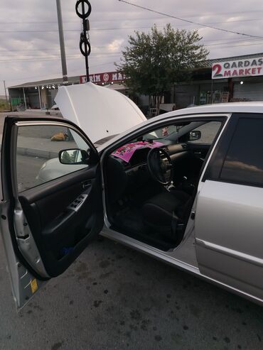 Toyota Corolla (E120) hatchback, gümüşü rəng. - Kuzov: 5 qapılı hatchback, kompakt ölçü, şəhər üçün rahat manevr etmə. - Mühərrik: Benzin. Ön ötürücülü. - Transmissiya: Mexaniki (şəkillərdə mexanik...