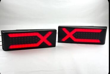 Avtomobil üçün arxa siqnal/stop işıqları dəsti - 2 ədəd qırmızı linzalı düzbucaqlı faralıq - Gövdə: qara korpus, metal bərkidici kronşteyn və bolt‑qayka ilə tək nöqtədən montaj - Şüşə üzərində işa...