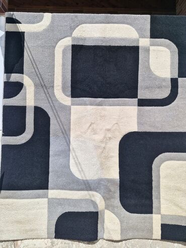 Müasir daxili dizayn üçün mükəmməl uyğun gələn qara, boz və bej rənglərdə abstrakt naxışlı xalça. Həndəsi fiqurlarla bəzədilmiş bu xalça istənilən otağa müasir və zərif bir görünüş qatmaq üçün nəzərdə tutulmuşdur. Otağınıza rahatlıq və stil əlavə etmək üçün əla seçimdir.