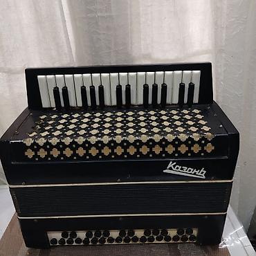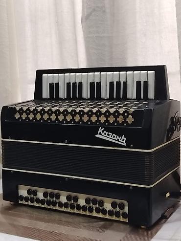 “Kazan” klavişli-bayan (akkordeon) - Marka/model: Казань (Kazan) - Növ: Klavişli bayan – sağda pianino tipli klaviatura, solda bass və akkord düymələri - Korpus: Qara rəng, metal dekorativ qəf...