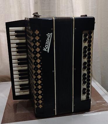 Kazanь marka akkordeon - Tip: Piano klaviaturalı bayan/akkordeon - Klaviatura: sağ tərəfdə 25 ədəd piano düyməsi (ağ-qara) - Sol tərəf: bas və akkord üçün sətirlərlə düymə sistemi (çoxsıralı, yuva...