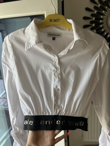 - Model: qısa (crop) kəsim, klassik yaxalıq, düyməli ön hissə