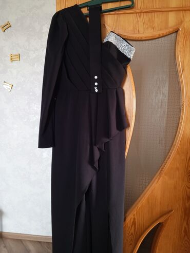 Qara rəngli şık gecə kombinezonu - Dizayn: Asimmetrik bir-çiyin